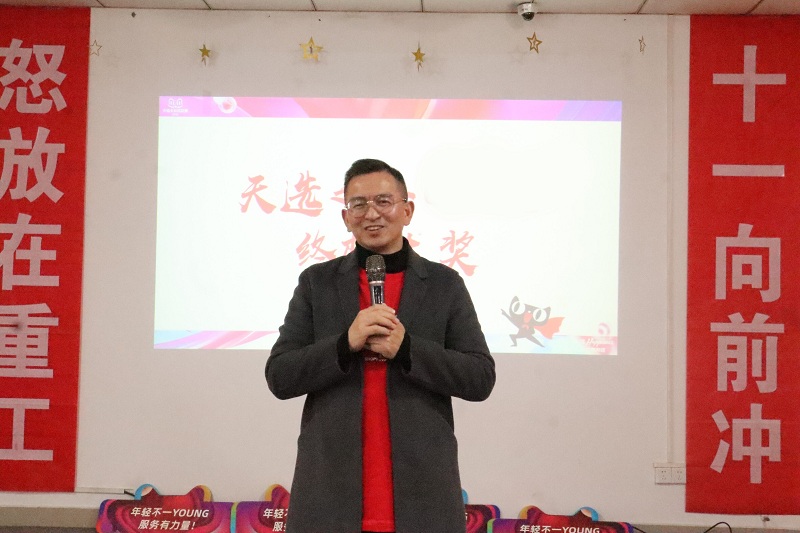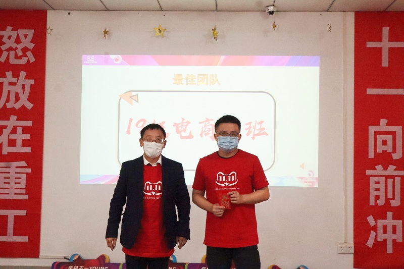 晚会最后,重庆工程学院校长助理简玉刚发表了热情洋溢的讲话,最后用精彩的互动抽奖方式为阿里基地的师生们加油打气,希望同学们在双十一战役中突破自己,再创佳绩!
