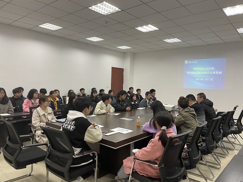 本网讯(文/图 双桥校区 吕颖莉)为切实加强我校学风建设,健全学风建设长效机制, 11月11日晚,双桥校区2021年学风建设精品项目立项答辩会在办公楼201会议室成功举行。双桥校区党工委副书记孙建,学生事务办公室副主任王儒,校团委副书记陈军及英语教学部教师蹇佳担任此次答辩会评委。