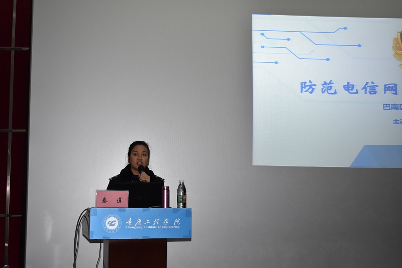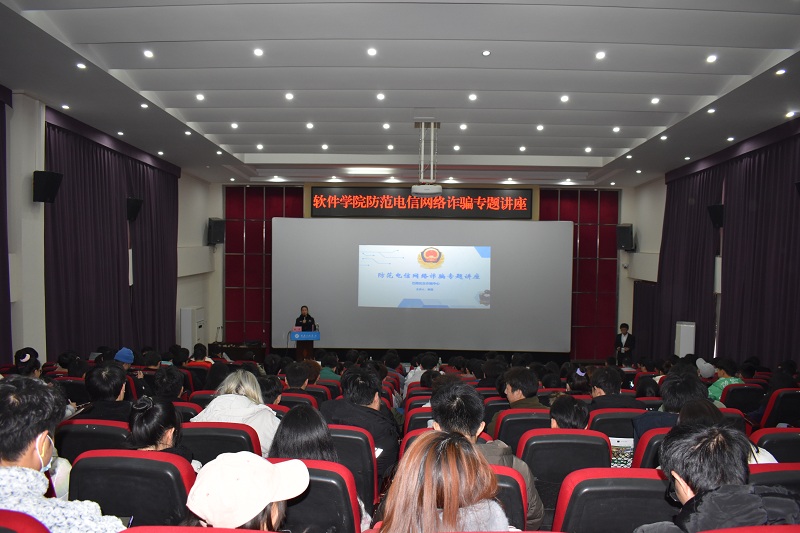 本网讯(文/图 软件学院 李阳)近来电信网络诈骗案高发,为了让同学们了解诈骗套路,提高防骗意识,软件学院于11月17日下午在行政楼阶梯报告厅开展防范电信网络诈骗专题讲座,巴南区反诈骗中心秦莲警官一行为软件学院200余寝室长开展防诈培训。软件学院党总支书记刘子菱参加,讲座由学生科长、分团委书记李阳主持。