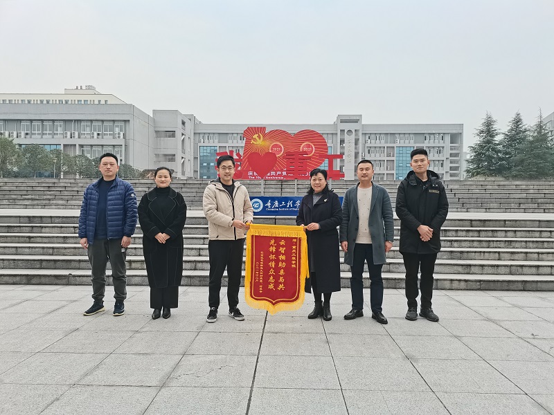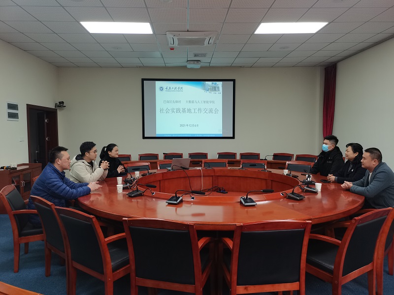 本网讯(文/图 大数据学院 王惠俊)12月6日,巴南区先锋村与大数据学院在我校开展2021年社会实践基地工作总结交流会,本年度先锋村荣获全国第二批乡村建设示范村荣誉称号,为感谢我校在多个项目的工作支持,特赠送锦旗。先锋村党委书记、村委会主任潘玲、团委书记何鸿志带队来校,大数据学院党支部书记尚伟、分团委书记王惠俊、“云智”志愿服务队指导老师敬夫参会。