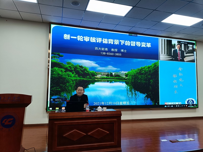 本网讯(文/图 教学质量管理办公室 周亮)为提升教学督导水平,切实发挥教学督导在督管、督教、督学过程中的重要作用,12月10日下午,教学质量管理办公室组织召开2021年本科教学督导专题研讨交流会,会议邀请了西南大学教务处处长吴能表教授来校作报告。分管校领导,二级学院教学副院长,校、院两级教学督导,教务处、教学质量管理办公室相关人员参加了本次会议。会议由教学质量管理办公室赵钰主任主持。