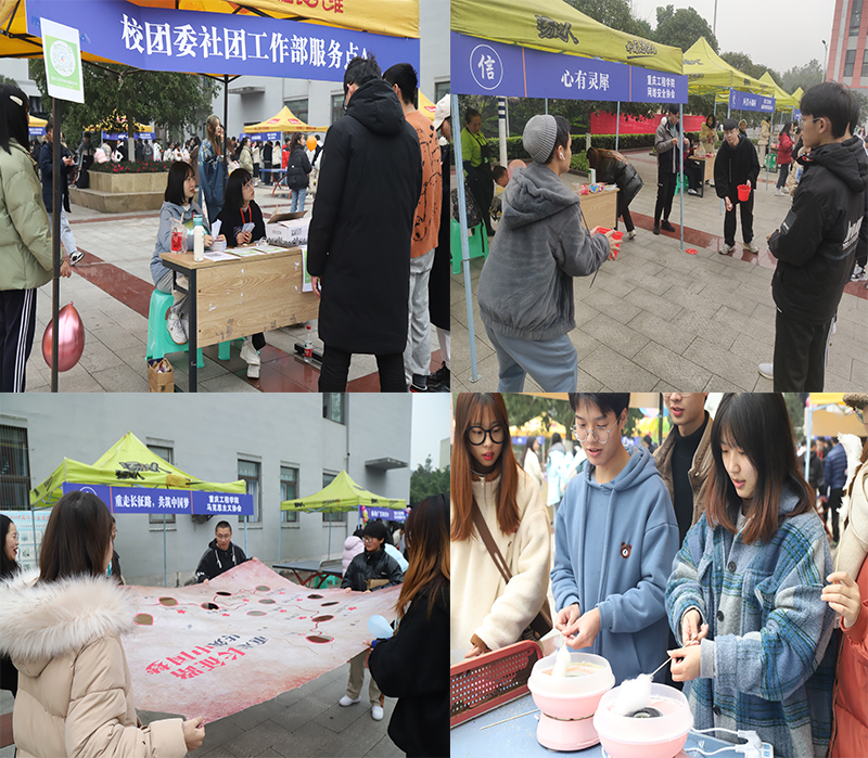 本网讯(文/图 校团委 金质纯)为繁荣校园文化、展现社团特色、服务学生成长、促进我校学风建设,12月10日下午,校团委于和园5号广场组织开展第七届文化艺术节“多彩重工 缤纷社团”2021年第二季社团嘉年华-社团游园会,共计1900余名同学参加本次活动。