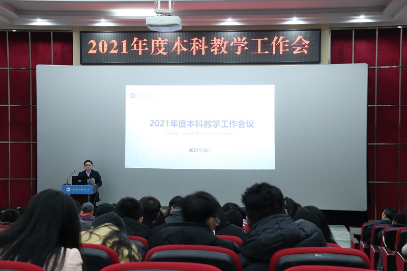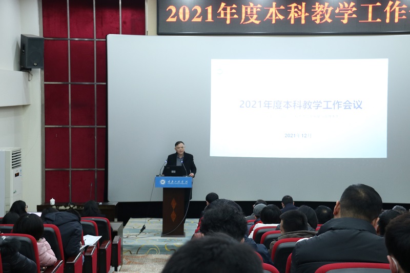 上午,校长助理杨桂作题为《坚持以评促建,全面提高人才培养质量》的主题报告。报告总结了本年度在教学制度建设、管理体系构建、人才培养方案修订、课程思政体系建设、课程建设、教材建设、实践教学与实验室建设、教学改革等本科教学工作中取得的成绩,深入分析了当前教学工作面临的形势和任务,指出存在的问题和不足。她从九个方面对2022年的教学重点工作进行了部署,一是要持续优化学科专业结构,抓好专业建设;二是要深化人才培养模式改革,持续优化人才培养方案;三是要深入推进校企合作,实现产教协同育人,四是要全面实施课程思政,继续推进课程建设,五是要加强实践教学管理,促进实践教学规范化运行;六是要深入开展教学改革,推进信息化智慧教学;七是要严格教学 管理规范,加强教学基本建设;八是要加强管理团队建设,夯实教学管理团队;九是要完善二级管理制度,健全质量监控体系。