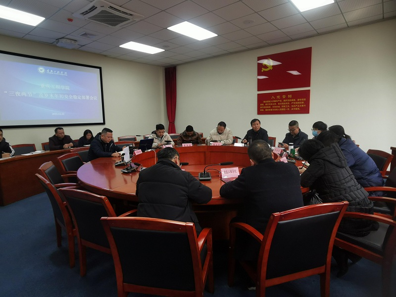 本网讯(文/图 保卫处 易鹏)12月22日上午, 学校在第三会议室组织参加了重庆市教育系统“三节两夜”及岁末年初安全稳定部署电视电话会议,会后就如何宣传贯彻落实此次会议的精神,纪委书记兼工会主席唐小勇组织召开了2022年元旦跨年及岁末年初安全稳定工作会议。校长助理王建东,保卫处、学生处负责人和各二级学院书记、学工主任参加了此次会议。