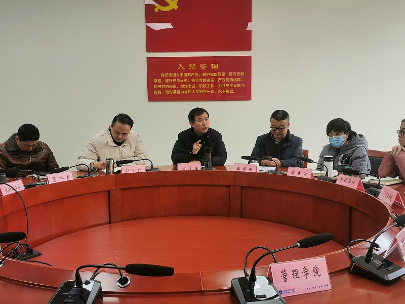 唐小勇结合我校实际情况对校园安全稳定、交通安全、反诈教育等几个方面再次进行强调,唐小勇指出,安全稳定工作是学校党委行政和各级各部门的基本功,是学校迎评促建和实现高质量发展的基础保证。各级各部门要保持清醒头脑,深刻认识维护学校安全稳定的重要性,加强分析研判,准确把握面临的严峻形势和艰巨任务,夯实安全稳定体系,细致排查隐患苗头,严格抓好落实,有力确保师生平安健康、校园安全稳定。