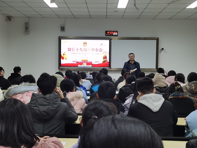 本网讯(文/图 管理学院 荣菁菁)百舸争流千帆竞,借海扬帆奋者先。在建党百年之际,为全面了解党的百年奋斗重大成就和历史经验,激励当代青年勇于奋斗,强化理想信念,学校党委委员、校长助理王建东于12月28日在6102教室为管理学院80余名学生预备党员宣讲党的十九届六中全会精神。