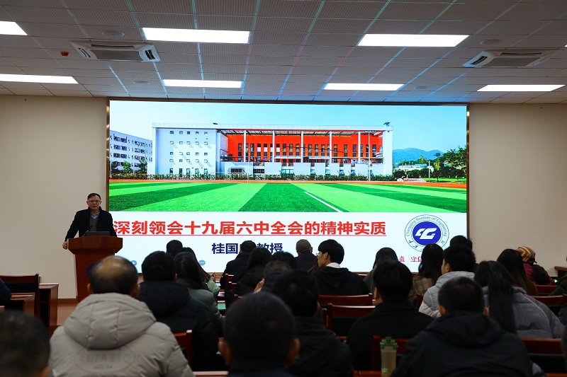桂国庆要求,要把学习贯彻党的十九届六中全会精神作为当前学校的重大政治任务,坚持用全会精神统一思想和行动、凝心聚力、增强斗志,用实际行动同以习近平同志为核心的党中央保持高度一致。从党百年奋斗的重大成就和历史经验中汲取智慧和力量,不忘初心、砥砺前行,努力承担起实现中华民族伟大复兴的历史责任。立足本职工作和学习生活,埋头苦干、勇毅前行,用实际行动推动学校顺利通过合格评估。