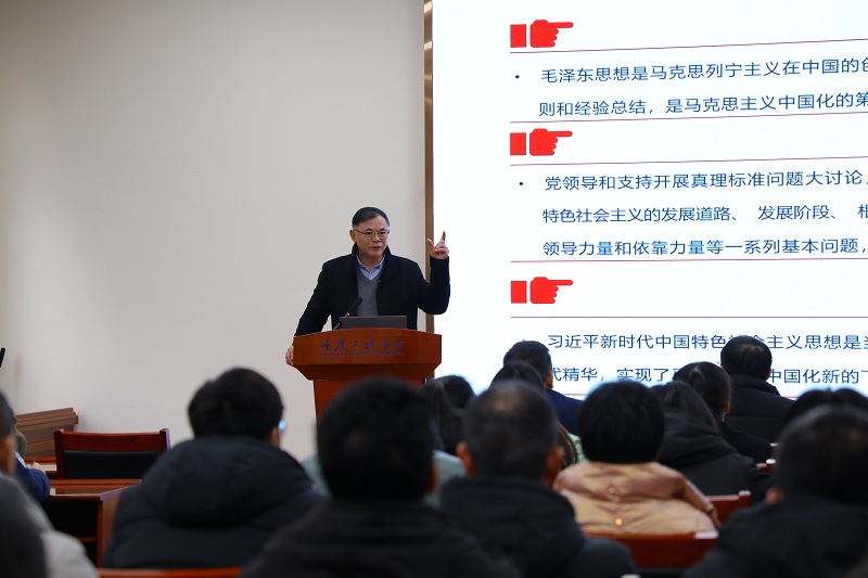 本网讯(文/图 计算机与物联网学院 潘晓宇)党的十九届六中全会,是在我们党成立一百周年的重要历史时刻,在党和人民胜利实现第一个百年奋斗目标、全面建成小康社会,正在向着全面建成社会主义现代化强国的第二个百年奋斗目标迈进的重大历史关头召开的重要会议,在党的历史上具有重要的里程碑意义。为深入贯彻学习会议精神,2022年1月5日,校长桂国庆在办公楼201会议室分别为计算机与物联网学院全体教职工和学生党员宣讲十九届六中全会精神。