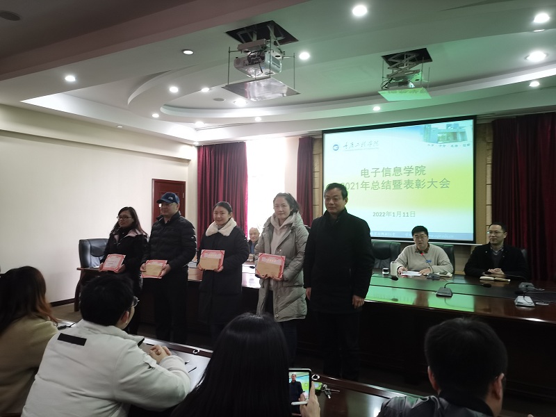 会上,谭思宇宣读《电子信息学院关于表彰2021年度优秀个人的决定》,对一年来我院教师在科研学术、学生竞赛、教学竞赛、辅导员素质能力大赛、青年教师磨课组织等教育教学岗位上辛勤工作、无私奉献、并取得突出成绩的李翠锦等14位老师进行表彰并颁发证书与奖金,号召全体教职工向受表彰的同志学习,以他们为榜样,热爱教育事业以更加饱满的工作热情投入到教育教学中。