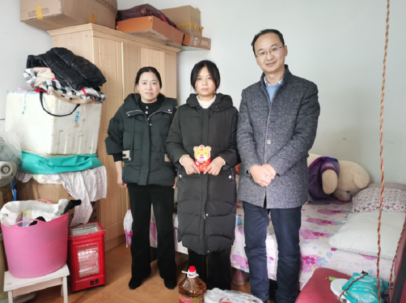 各位党员教师分别前往武隆、彭水、黔江、云阳、奉节、石柱等地开展走访慰问,为贫困学生家庭送上慰问品、助学金和诚挚的新年祝福,让贫困学生和家长在寒冬中感受来自学校的深切关爱。走访慰问中,老师们详细了解学生家庭和实际困难,向家长介绍学生在校的学习、生活状况以及学校资助、帮扶政策。同时勉励学生要正视困难,磨炼意志,始终保持勤奋拼搏的精神和吃苦耐劳的品质,以一颗平常心对待困难,树立信心,努力奋斗,做好职业规划,用知识改变自己和家庭的命运,用优异的成绩回报社会。希望家长和学校保持联系,共同克服经济和环境方面的暂时困难,从精神层面多鼓励学生立志、勤学。