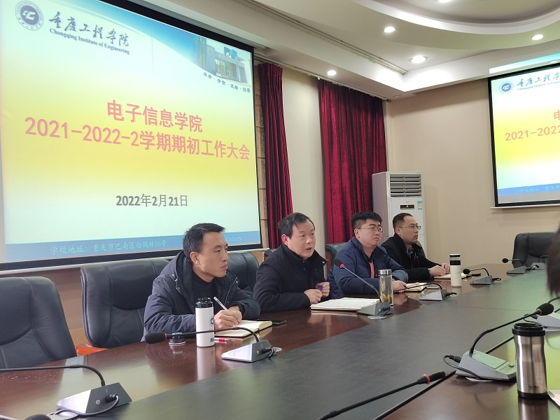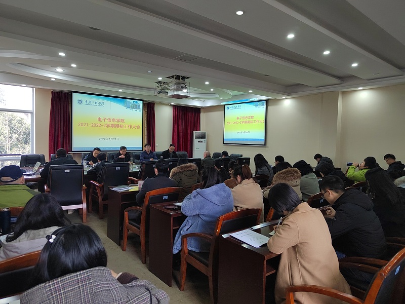 本网讯(文/图 电子信息学院 魏登雪)2月21日,电子信息学院在第七会议室召开2021-2022学年度第2学期期初工作大会,会议由学院院长何世彪同志主持,全体院领导、全体教职工共计58人参加。