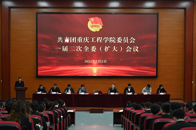 本网讯(文/图 校团委 金质纯)3月2日下午,共青团重庆工程学院委员会一届二次全委(扩大)会议在第七教学楼报告厅举行。学校党委书记兼督导专员谭明术、校长助理王建东出席大会,党委学生工作部、校团委等部门负责人,各学院党总支书记、分团委书记、团学干部代表共计400余人参加会议。