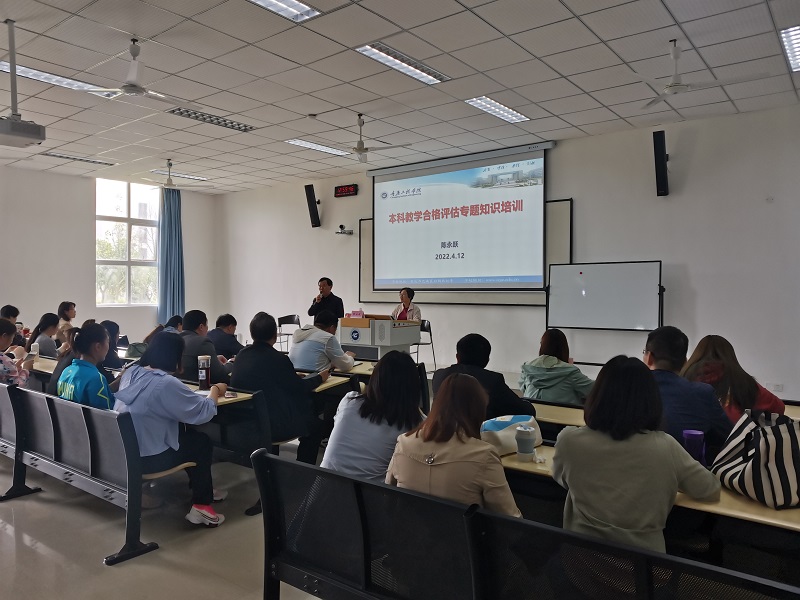 本网讯(文/图 双桥校区综合办 王瑜琳)4月12日下午,我校本科教学合格评估指挥长陈永跃教授在双桥校区教学楼107教室开展了本科教学合格评估专题知识培训,培训会由纪委书记兼工会主席、双桥校区管委会主任唐小勇主持,通识学院院长王洪珂、双桥校区党工委副书记孙建、通识学院副院长严伟及双桥校区全体教职工参加了本次培训。