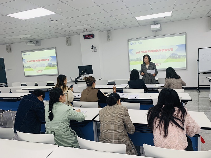 本网讯(文/图 大学生素质教育中心 卢颖)为进一步提升青年教师教学技能和教育教学能力,促进教师专业发展,4月15日,大学生素质教育中心在第七教学楼1101教室开展了2022年青年教师教学技能大赛院级比赛。学校质评办督导郭爱平教授,中心常务副主任邹春霞教授以及黄梅副教授担任本次比赛评委。按照人人参与原则,南泉校区全体中青年教师参与了现场比赛,双桥校区的老师以视频方式参赛。