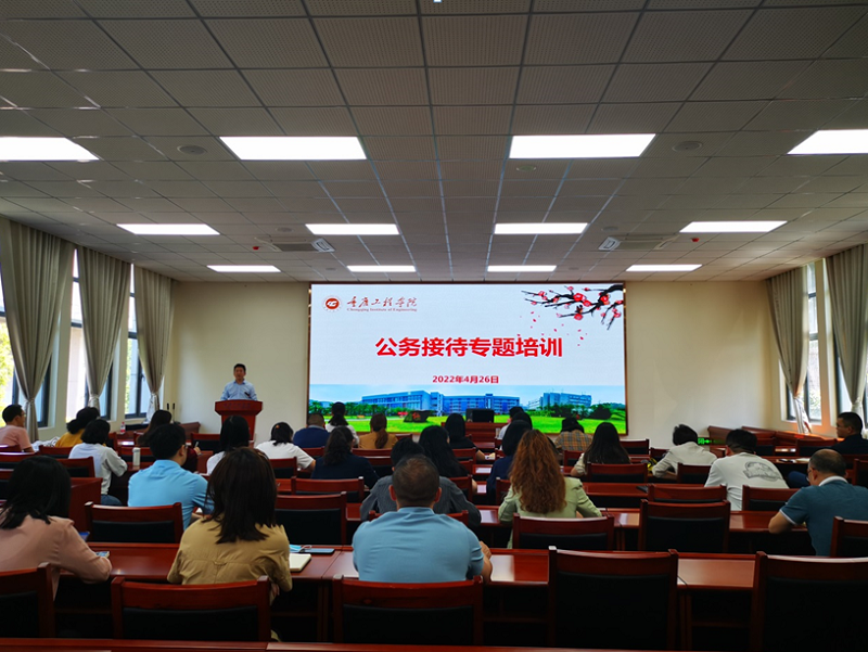 本网讯(文/图 党政办 王欢)为提升全校的服务水平与服务意识,规范公务接待的流程与标准,4月26日下午,学校在南泉校区行政楼第四会议举办了公务接待专题培训会,培训会由重庆第二师范学院旅游与服务管理学院副院长刘焱主讲。校长桂国庆,党委副书记、常务副校长张业平,副校长王建东出席了本次培训会,评估接待组全体成员、部分职能部门负责人、各二级学院办公室主任、就业科长、辅导员等近50人参加了培训。此次培训会由党政办公室主任邹均主持。