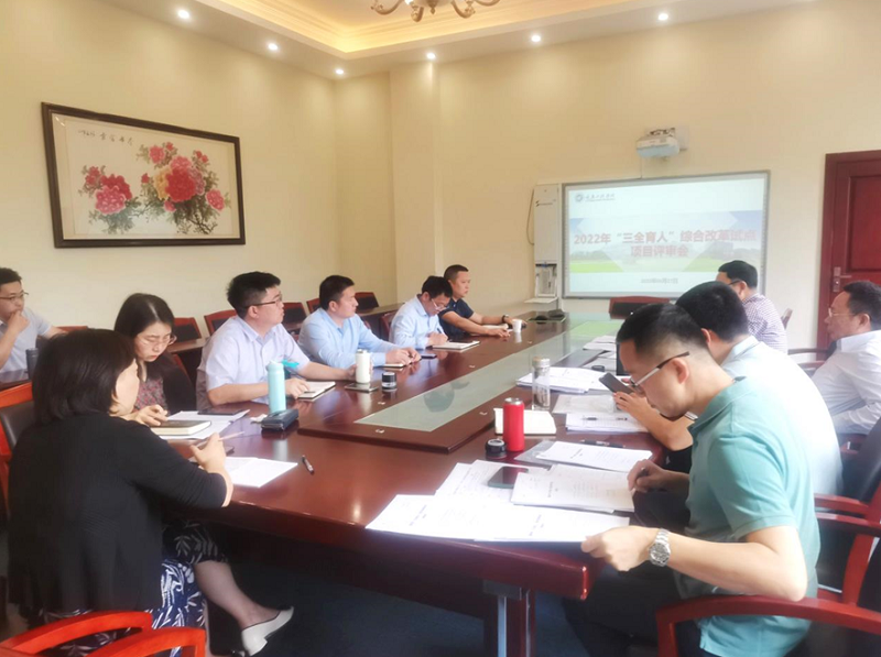 本网讯(文/图 学工部 黄燕)为全面推进 “三全”“十大”育人体系和学校思想政治工作“1234”推进体系构建工作,推进学校“三全育人”综合改革,落实《重庆市教育委员会关于做好区县教委和市属高校主要领导开局项目的通知》(〔2021〕—295)要求,根据市教委2022年“三全育人”综合改革项目申报文件要求, 4月27日上午,学校在行政楼207会议室召开了“三全育人”综合改革项目评审会。党委书记、督导专员谭明术,党委副书记、常务副校长张业平,副校长王建东,相关职能部门负责人和各二级学院党总支书记参会。会议由学校副校长王建东主持。