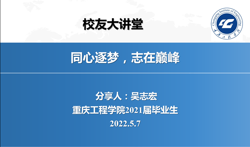 本网讯(文/图 校友服务中心 叶秋清)为了帮助大学生提高对未来职业生涯的选择与规划能力,有目标、有针对性地做好大学学业规划,我校校友服务中心于5月7日下午举办了第46期“校友大讲堂”。本次大讲堂邀请了优秀校友吴志宏开展了“同心逐梦,志在巅峰”的主题分享。全校6100多名同学通过“重工校友”公众号参与了此次线上交流活动。
