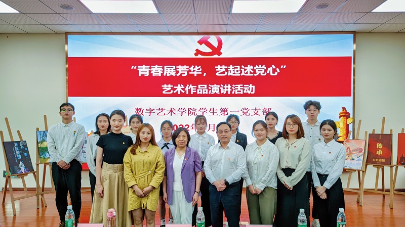 本网讯(文/图 数字艺术学院 李欧伦)5月25日,党委副书记、常务副校长张业平在行政楼201参加了数字艺术学院学生第一党支部开展的“青春展芳华,艺起述党心”为主题的艺术作品演讲党日活动。数字艺术学院党总支书记徐小辉,数字艺术学院学生第一党支部书记李欧伦、支部委员覃薇、蔡霞、韩祺琦及支部全体党员参与了本次活动。