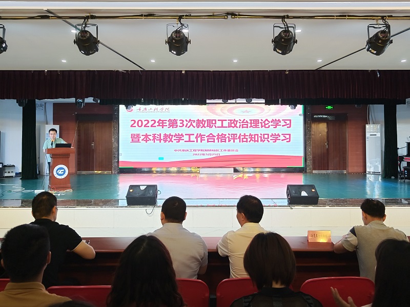 本网讯(文/图 双桥校区 吕颖莉)为进一步感悟精神伟力,凝聚发展共识,持续推进本科教学工作合格评估准备工作,帮助校区教职工更好的了解和掌握本科教学工作合格评估的基本知识、相关要求以及我校本科教学工作的基本情况, 5月25日下午,双桥校区召开了2022年第3次教职工政治理论学习暨本科教学工作合格评估知识学习会。此次大会由双桥校区党工委副书记孙建主持。