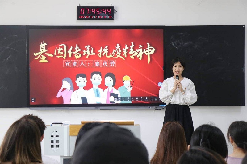 据了解,双桥校区学生党支部从一百余名入党积极中挑选了20名优秀学生组成“百年党史青年说”宣讲团,3天时间深入了30个班级开展宣讲活动。