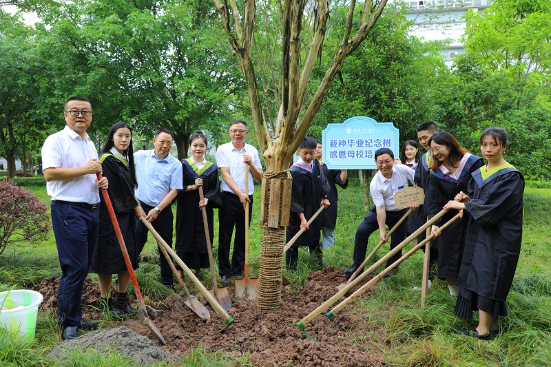 毕业典礼后,校领导和参加典礼的师生代表亲切合影,并共同种下象征希望与理想的紫薇树。