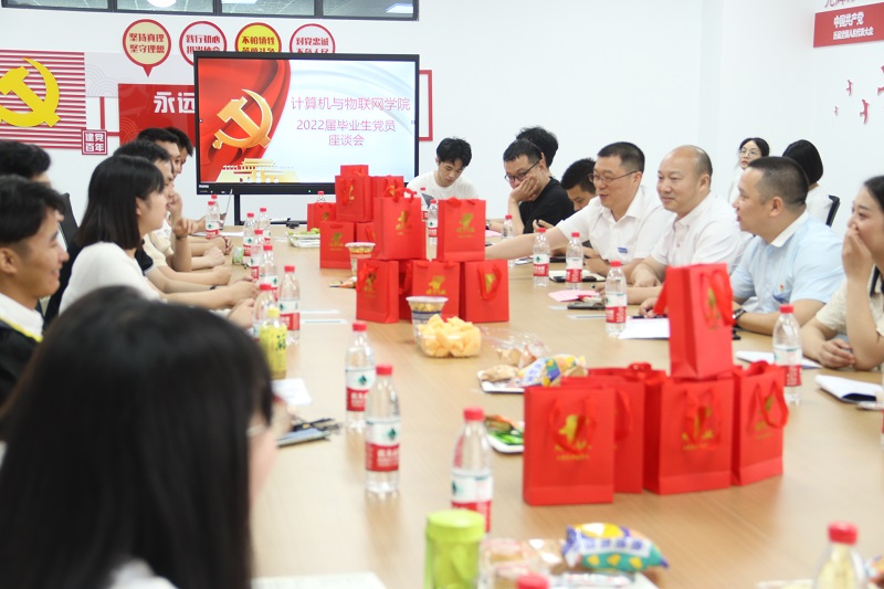 本网讯(文/图 计算机与物联网学院 潘晓宇)7月2日上午,计算机与物联网学院2022届毕业生党员代表座谈会在7教806会议室召开,学院党总支书记覃华伟、学院院长李发陵、副院长李波、教务科长秦旗、各系主任以及毕业生党员共同参加此次座谈会,本次会议由覃华伟主持。