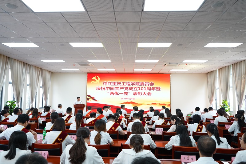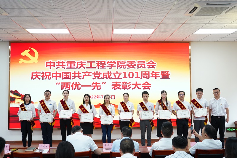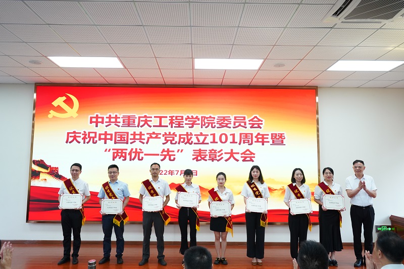 大会以新党员入党宣誓、老党员重温入党誓词和表彰先进典型的方式,庆祝中国共产党成立101周年,回顾党的光辉历史,弘扬伟大建党精神。会议在庄严的国歌声中开始。党委委员、校长桂国庆宣读了《中共重庆工程委员会关于表彰2022年度优秀共产党员、优秀党务工作者和先进基层党组织的决定》。党委书记、督导专员谭明术,校长桂国庆,副校长王建东等为获奖单位和个人代表颁发了荣誉证书和奖牌。