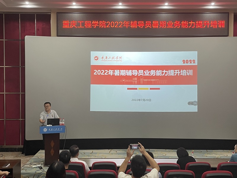本网讯(文/图 学生处 何杰玲)为进一步加强辅导员队伍建设,提高辅导员业务能力和工作水平,推动辅导员职业化、专业化发展, 7月19-20日,学生处组织开展了辅导员素质能力提升培训会,特别邀请了西南大学教育学部杨挺教授,西南大学新闻传媒学院党委副书记叶海燕教授,学校武装部部长熊力作专题培训。南泉、双桥两校区各二级学院党总支书记、学生科长、辅导员、学生处全体成员共计70余人参训。