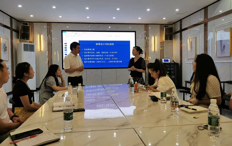 培训期间,曹贵康针对教学技能、课程设计等方面对全体教师进行了细致、专业的理论讲解。围绕2022年微课教学比赛,曹贵康为老师们进行了大赛评分标准的解读和微课设计的培训。大学生素质教育中心黄梅老师及杨雷雷老师现场进行微课展示,曹贵康以此为例,给予了细心的指导。参训教师在听取曹教授的指导后针对自己的微课内容进行了热烈的讨论和心得交流。