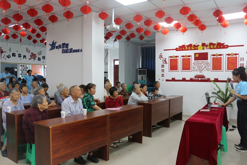 电子信息学院社会实践团队在巴南区界石镇畅想社区开展面向老龄人急救知识讲解活动。同学们将理论知识与现场实践相结合,一边讲解,一边台上示范演练,不仅丰富了老年人的健康护理知识,提高了老年人的应急救护能力,也弘扬了爱老敬老的传统美德,营造了“老有所学”的良好氛围。