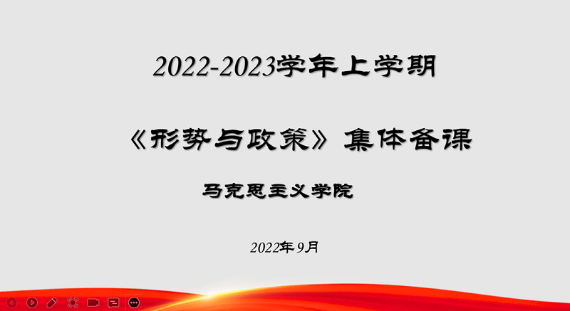 备课会首先由“形策”教研室主任陈荣老师分别从“伟大时代的历史跨越”“高效统筹疫情防控和经济社会发展”“保障粮食安全的中国策”“乌克兰危机演变及影响”四部分,向全体教师就课程讲授要求、教学内容重难点、讲授建议、考核办法、试卷归档等工作做说明。