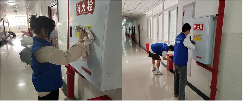 翌日,“团学青年”志愿者服务队又开展“我为公寓添份彩”志愿服务活动,深入全校各宿舍楼栋排查消防安全隐患,打扫公共区域卫生。在为全体同学营造干净优美的学习、生活环境的同时,引导同学们牢固树立“校兴我兴,校荣我荣”的主人翁意识,自觉服务我校本科教学合格评估工作顺利、有序、有效推进。