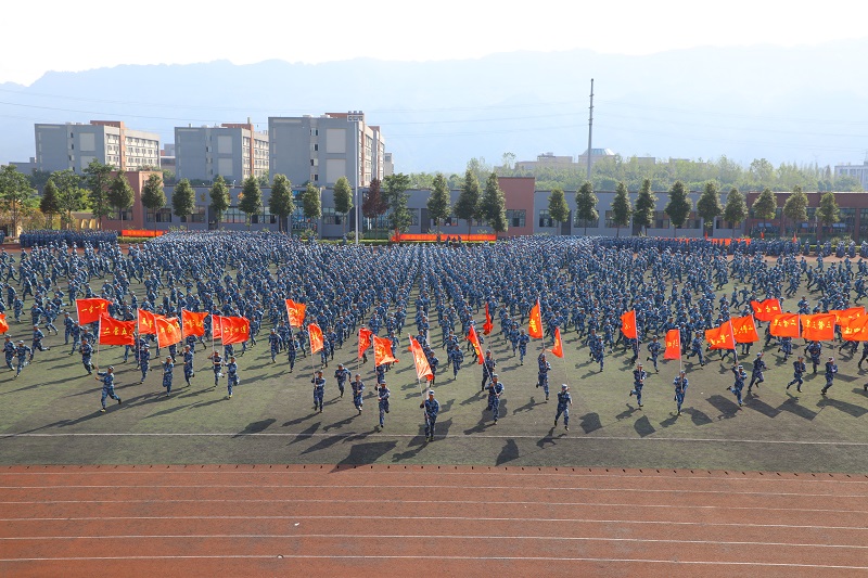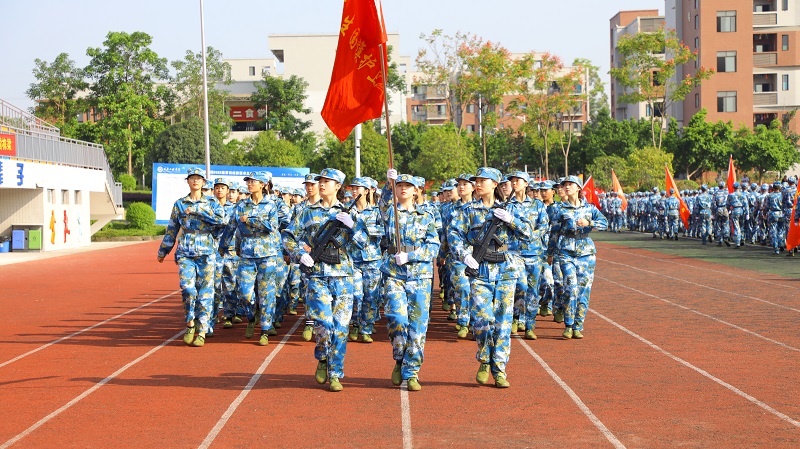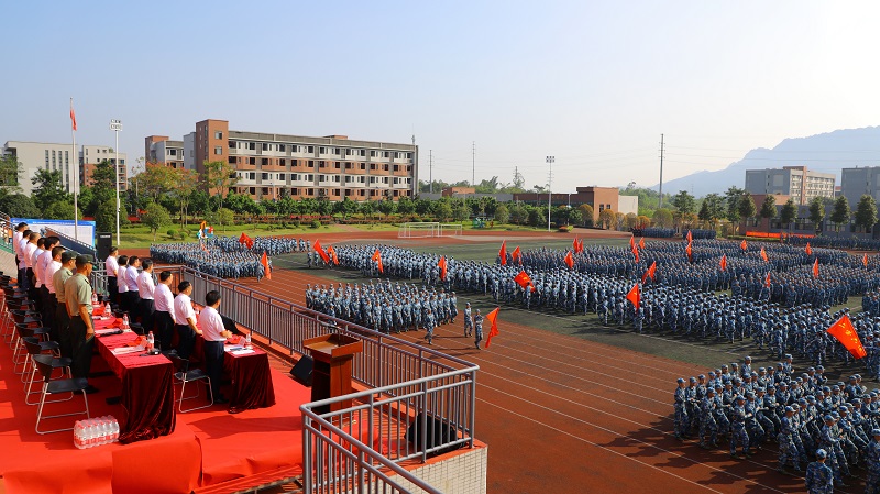 检阅仪式在庄严的升国旗、奏国歌仪式中拉开帷幕。伴随着激昂的《解放军进行曲》,军训成果汇报演出正式开始。各方阵训练标兵身着迷彩服,在方队队长和方队政委的带领下,迈着铿锵的步伐、喊着嘹亮的口号,依次通过检阅台。他们动作整齐划一、气势豪迈、无一不展现出军人气质。各方队先后进行了分列式、花式方阵、军体拳、手语操等精彩表演,赢得了全场掌声与喝彩。2022级共4000余名学生经过为期十天艰苦的军事训练,在检阅式上体现出“尽责、守信、求精、创新”的校训精神,为自己的军训呈上了一份满意的答卷。