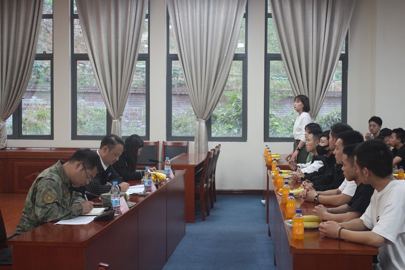 熊力在认真听取大家的发言之后,首先针对同学们提出的疑问和困难进行了现场解答。他结合自身工作经历,希望大家提高自己的组织能力、沟通能力、创新能力。最后,熊部长对在场的全体同学提出了三点要求:一是希望大家尽快转换角色,适应环境,积极主动调整心态,增强自我认知能力;二是希望大家做好未来规划,继续努力前行,付诸行动于实践;三是希望大家永葆军人本色,发挥标兵示范作用,在学习上做标兵,在守己上做表率,为祖国建设贡献自己的力量,为一起建设重工校园而努力奋斗!