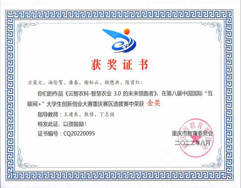 本网讯(文/图 创新创业学院 洪潜)近日,重庆市教委发布《关于第八届中国国际“互联网+”大学生创新创业大赛重庆赛区选拔赛获奖情况通报》(渝教高函〔2022〕62号),学校在本届大赛中取得优异成绩,获得市级金奖1项、银奖1项、铜奖14项,王建东、熊佳、丁志强3位指导教师获得“优秀创新创业导师”称号。