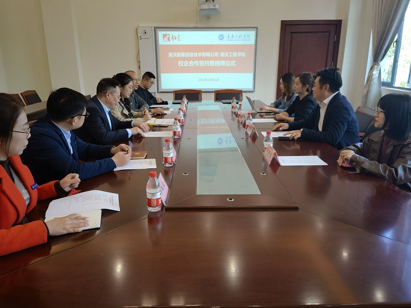 本网讯(文/图 校企合作办公室 宁俊龙)10月31日下午,学校在第六会议室举行重庆超星信息科技有限公司-重庆工程学院校企合作暨授牌仪式,党委书记、政府督导专员谭明术,教务处处长杨倩,信息中心主任皮小军,数字艺术学院院长杨开富,副院长庄涛文以及职能部门相关人员,超星集团副总经理、西南区总经理陈朝侃、超星集团重庆分公司副总经理赵汝林等出席仪式。仪式由教务处处长杨倩主持。