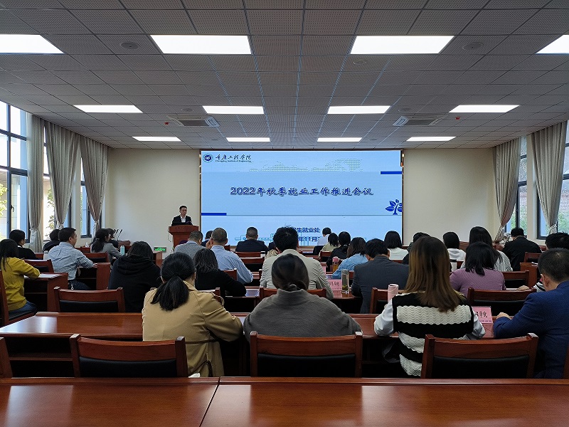 本网讯(文/图 招就处 叶秋清)为深入贯彻落实党的二十大精神,坚持就业优先战略,以学生为中心,全力推进高校毕业生就业各项工作。11月2日下午,我校在第四会议室召开了“重庆工程学院2022年秋季就业工作推进会”。理事长、校长王万均,党委书记、督导专员谭明术,副校长王琼花,教务处、学生处、团委、质管办、武装部等相关部门负责人,各专业二级学院党政主要领导以及2022届和2023届全体就业工作人员参加了本次会议。会议由招生就业处副处长吴优主持。