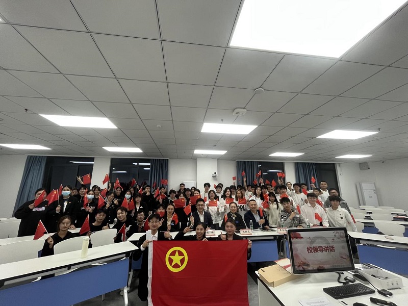 本网讯(文/图 计算机与物联网学院 张运)为更好地了解学校辉煌历史,展现重工学子的精神风采,计算机与物联网学院和管理学院于10月27日晚在七教1102教室举行"青春活力正当好,我为校史增光彩"主题团日活动。参加本次活动的领导有副校长王琼花、计算机与物联网学院党总支书记覃华伟、管理学院党总支书记尚伟。还有来自计算机与物联网学院辅导员张运、管理学院辅导员吴文红,以及20级网工一班团支部、20级营销二班团支部的同学。