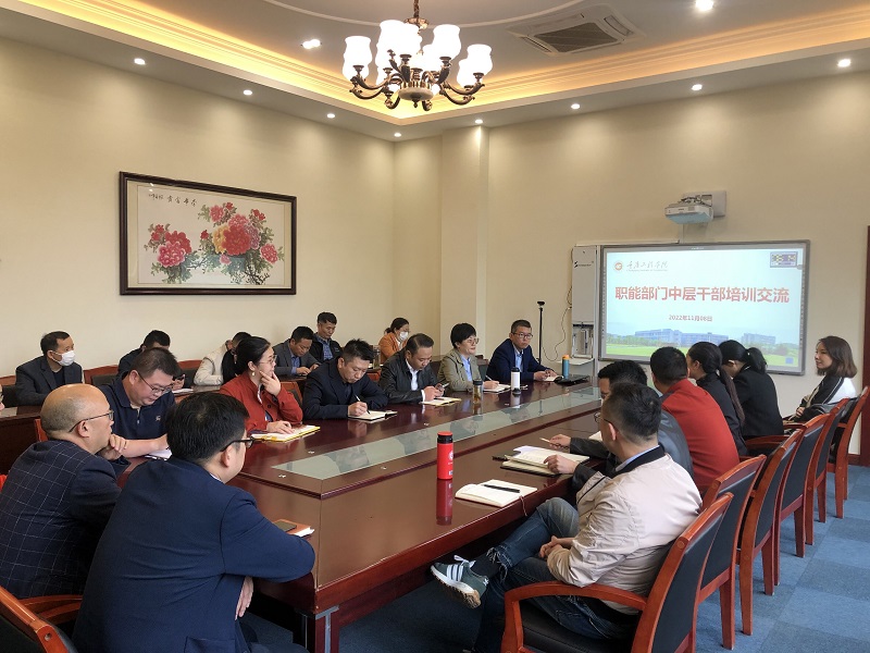 本网讯(文/党委宣传部 图/教师发展中心 张静)为进一步提升职能部门中层干部的服务管理水平,11月8日,学校举办了职能部门中层干部培训交流会,副校长王琼花、职能部门全体中层干部参加了会议。