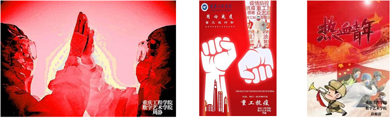 4. 这是一组以热血奋斗为主的作品。红色是力量的集中体现,众志成城、守望相助,重工师生同心同欲,同舟共济,疫情攻坚战我们必将胜利。