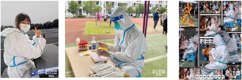 5. 这是一组以我辈青年学子冲锋在前为主的作品,也是重工抗疫小图册。让我们用志愿者红,守护大家的健康绿。支援有我,“疫”不容辞,那些绽放在“疫”线的党性分子们,他们用行动向我们传递着作为青年学子应有的担当。