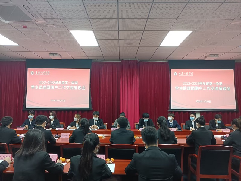 本网讯(图/文 学生处 熊佳)我校于11月23日晚在行政楼第一会议室召开2022至2023学年第一学期学生助理团期中工作交流座谈会,学生处处长黄燕,学生处教育管理科老师熊佳以及南泉校区各学生助理团队学生代表30余人参会。