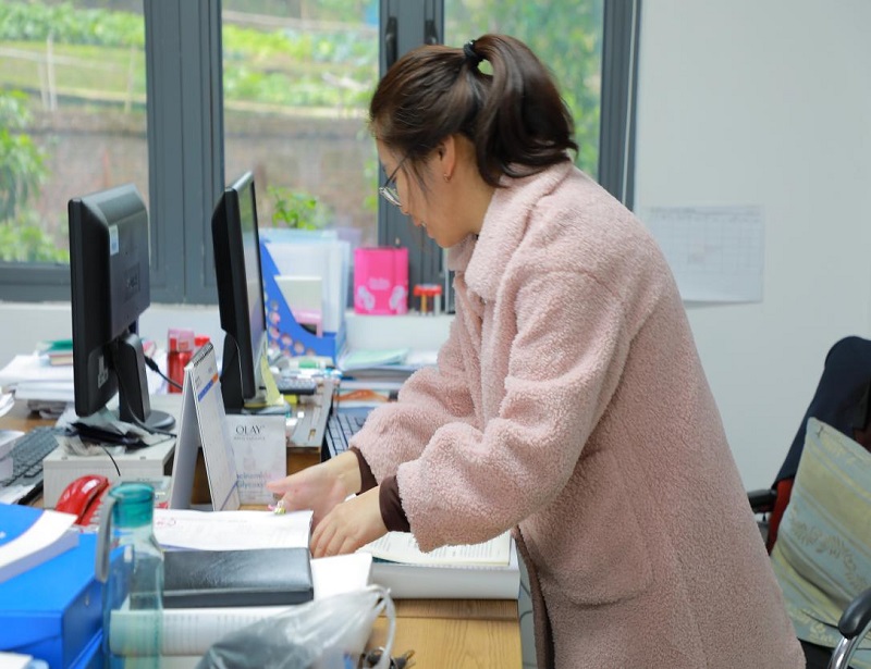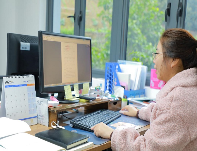 在工作上,她主要负责校企合作、实验室建设以及毕业实习相关课程等工作。面对教务处繁杂的工作她时常加班到深夜,又因为疫情的原因教务处其他人员被封控在家,很多担子她主动承担下来。有些工作需要在线上完成,导致她们的工作进行的不那么顺畅,她们会通过线上召开会议来共同解读一些文件,虽然效率不如线下,但是她们都在全力采取各种途径、方法去推进工作。