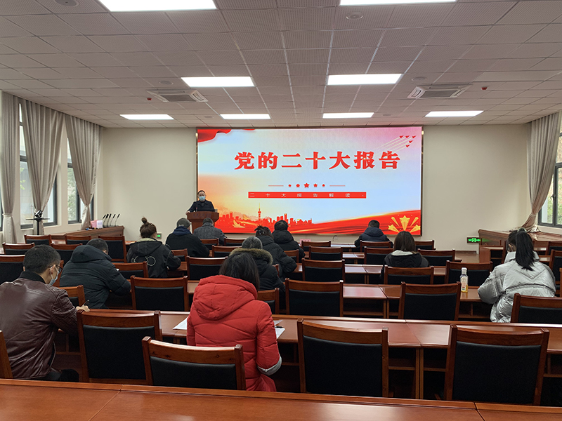 本次党课学习,张业平主要对党的二十大报告进行解读。党的二十大报告全面总结了过去5年工作和新时代10年的伟大变革,系统阐述了新时代坚持和发展中国特色社会主义的重大理论和实践问题,科学谋划了未来一个时期党和国家事业发展的目标任务和大政方针,是团结动员全党全国各族人民全面建设社会主义现代化国家、全面推进中华民族伟大复兴的政治宣言和行动纲领。报告的起草凝结了党中央领导人的集体智慧。张书记从“大会的主题”“新时代十年的伟大变革”“极不寻常、极不平凡的五年”“三件大事”等23组关键词,辅以生动形象的实例,带领与会同志读懂二十大报告。特别就教育予以深入解读,要办好人民满意的教育。