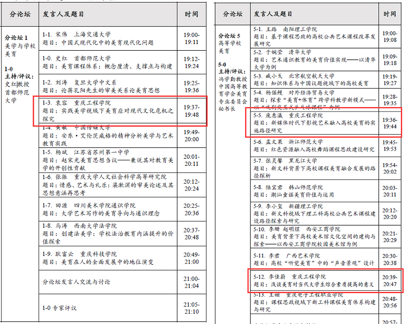 经过前期的论文投递,李佳蔚、庞惠瀛和袁容三位老师的相关论文成功入选,并在研讨会 “分论坛1-美学与学校美育”和“分论坛5-高等学校美育”两个版块进行发言,演讲题目分别是《浅谈美育对当代大学生综合素质提高的意义》、《实践美学视域下美育应对现代文化危机之探究》和《新媒体时代下影视艺术融入高校美育的实施路径研究》,分别从当代大学生美育教育的意义、美育应对现代文化危机和影视艺术融入高校美育的角度,提出了当代大学教育中美育所面临的问题和可行性分析,同时也同相关领域专家进行了深入交流和探讨,对《大学美育》教学团队的学术能力提升以及课程的建设起到了非常大的推动作用。