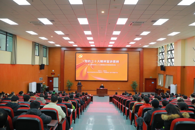 刘宴兵从党的二十大的主题和主要成果、过去五年的工作和新时代十年的伟大变革、马克思主义中国化时代化、中国式现代化、全面建设社会主义现代化国家的目标任务、坚持党的全面领导和全面从严治党和应对风险挑战等七个方面为学校干部师生生动宣讲了党的二十大精神。他强调,二十大报告为新时代新征程党和国家事业发展、实现第二个百年奋斗目标指明了前进方向、确立了行动指南,是党团结带领全国各族人民夺取中国特色社会主义新胜利的政治宣言和行动纲领,是马克思主义的纲领性文献。宣讲紧扣主题,深入浅出,内涵丰富,逻辑严谨,思想深刻,是启发思维、理清思路、鼓舞干劲的报告,是理论性强、针对性强、操作性强的报告,对学校干部师生深刻理解和准确把握二十大精神有极大的启发和帮助。