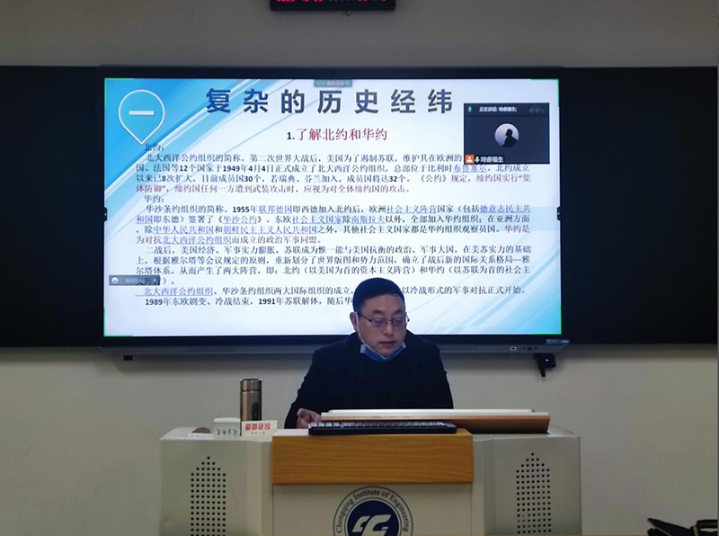 张业平云端以《乌克兰危机演变及影响》为题向21级环设3班讲授思政课。张业平首先从北约五轮东扩将俄罗斯“逼到墙角”、美国支持乌克兰加入北约导致乌克兰危机加剧和北约组织的实质三个方面讲清乌克兰危机由何而来。其次谈及乌克兰危机爆发造成广泛的国际影响,最后指出我国坚持走和平发展道路不动摇,中方就乌克兰危机始终坚持从事情本身是非曲直出发,独立自主做出判断,积极促进世界和平,促进全球经济秩序稳定。