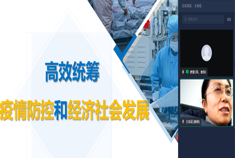 王琼花云端为21级软工6班讲授《高效统筹疫情防控和经济社会发展》。王琼花以“世界上一切事物都是永恒运动和变化发展”为依据,指出我国疫情防控政策是针对疫情形势变化及时做出的调整,并不是“躺平”。这是符合我国疫情形式变化的科学决策,因此我们要相信党和政府,坚持抗疫信心。