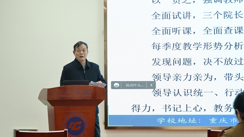 本网讯(文/教务处 张兴 图/大学生记者团 夏康慧 盘丽珍)3月01日下午,学校在行政楼第四会议室召开2022年度教学工作总结暨2023年度教学重点工作部署大会。会议由党委书记、督导专员谭明术主持,学生处、招就处、质管办、科技处、教师发展中心、信息中心主要负责人;各学院院长、分管教学副院长、教务科长;教务处、质管办、评建办全体人员;学校教学督导团全体成员参加了会议。