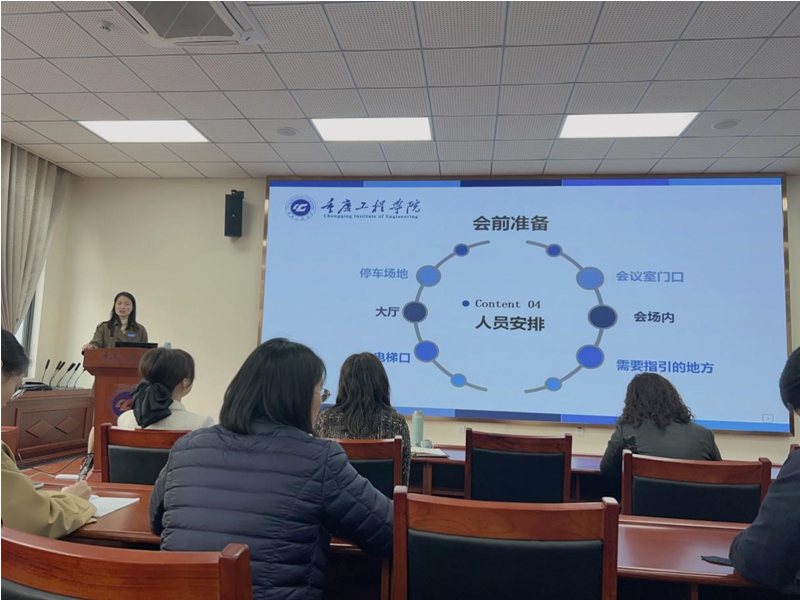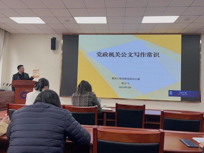 本网讯(文/图 党政办 王欢)为进一步提升学校办公室系统工作人员综合业务水平,提高工作质量和效率,更好地为全校师生服务,3月9日上午,学校党政办公室在南泉校区行政楼第四会议室举行了办公事务培训活动。各二级学院办公室主任、专职组织员,各职能部门负责办公事务的员工等近50人参加了培训(双桥校区视频参训)。党政办公室副主任李义飞和党政办公室行政综合管理岗黄莉分别从“党政机关公文写作常识”和“办公事务培训”两个板块进行了生动地讲解。此次培训会由党政办公室主任邹均主持。